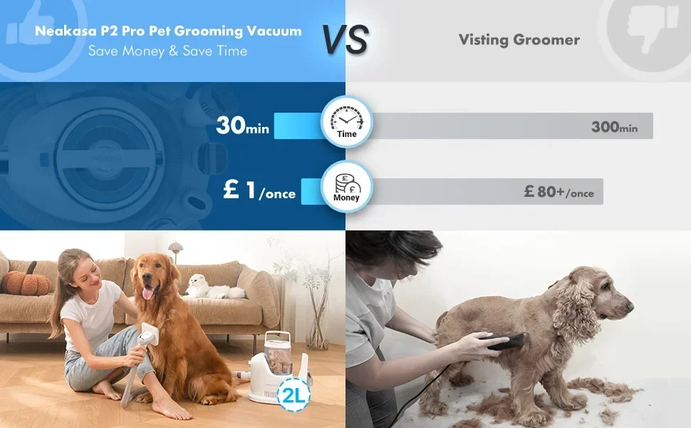If you and your pet enjoy visiting a professional groomer, then Neabot P2 Pro will tide you over nicely between appointments. It's an affordable home grooming solution that keeps your pet comfortable and your home clean and hair-free.