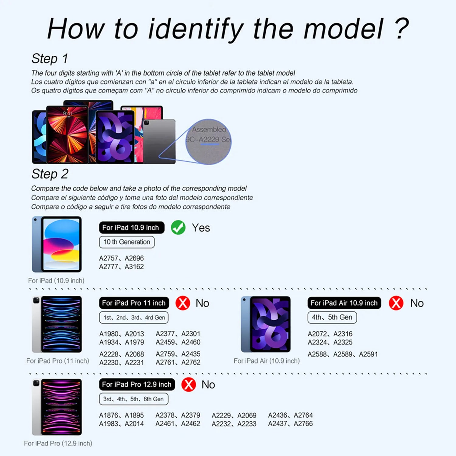 Note 2:Please check in the size and detail model of your iPad. it is very importtant ! ! ! The keyboard for iPad 10th Gen 10.9" 2022.